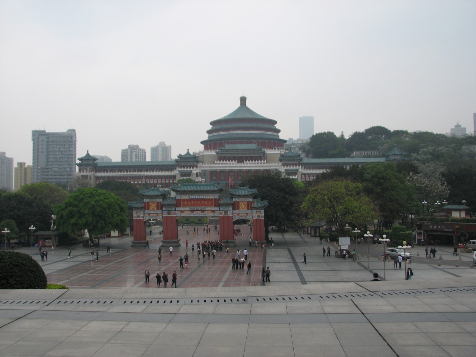 Downtown Chongqing. Our tour guide said he has never seen the top of that skyscraper because it's usually fogged over. The nickname for Chongqing is "Fog City". In the summer it can be 116 degrees with 94% humidity. Glad it was nice when we were there!